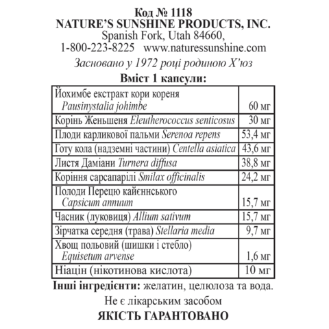 • кора корня Йохимбе (Pausinystalia yohimbe) — 60,0 мг;