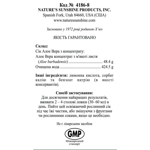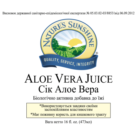 Состав БАД Сок Алоэ Вера (AloeVeraJuice) сохраняет все полезные свойства этого растения. Употребление препарата оказывает слабое послабляющее действие, что способствует выведению шлаков из организма. Содержание в соке алоэ антрахиноновых соединений снимает боли и спазмы в кишечнике. Выраженный антибактериальный эффект происходит благодаря соединению антрахинонгликозида барбалоина. Препарат оказывает заметный положительный эффект при лечении хронических гастритов, при запорах, язвенной болезни и проблемах с пищеварением. Снимает симптомы раздражения слизистой толстой кишки и улучшает всасываемость питательных веществ.